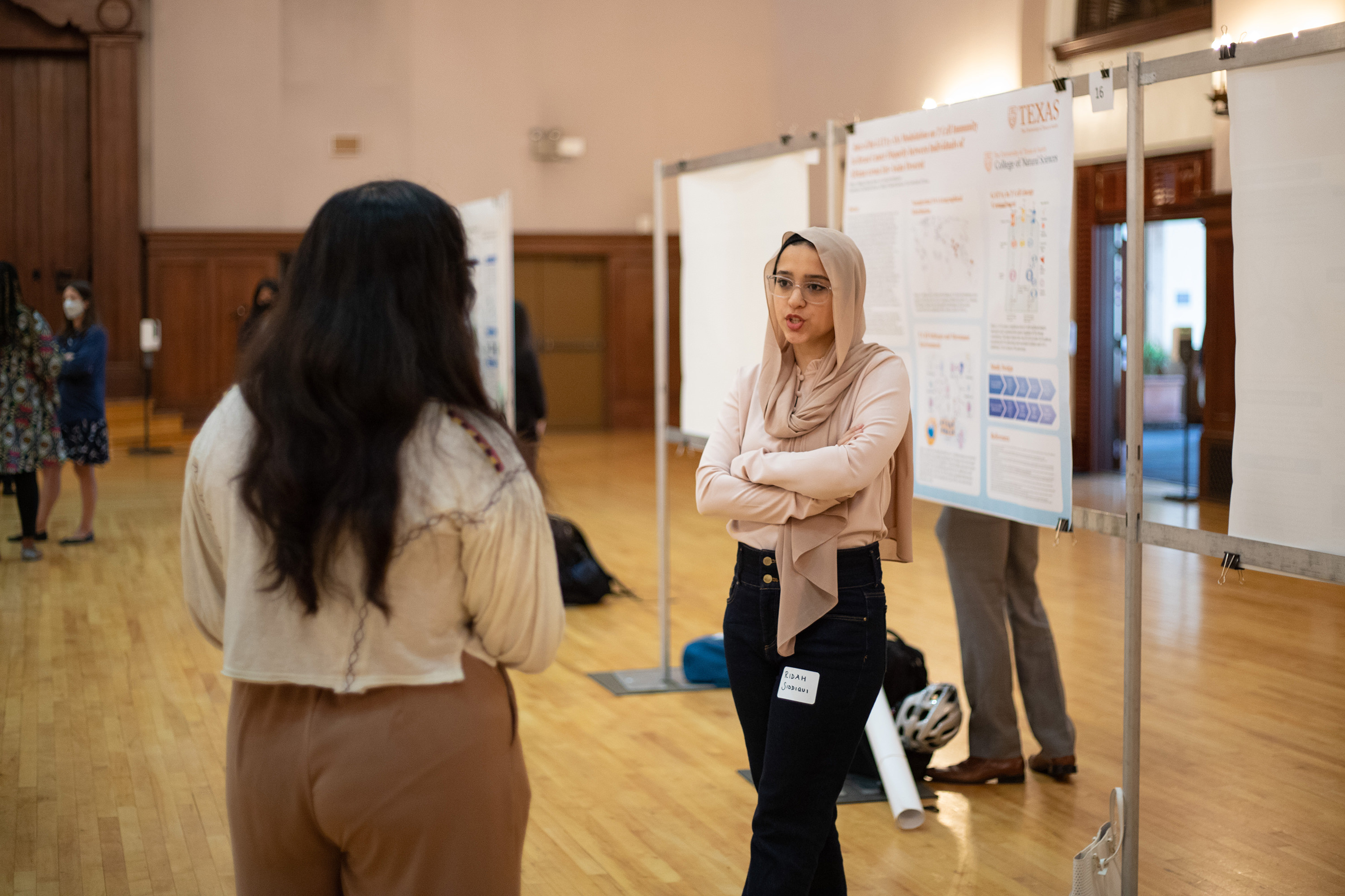 Each academic college participating in the event nominated students as finalists for poster presentation awards. Students were judged on their statements of their research problems and methodology, their results and conclusions, and the poster design and oral discussion. Thanks to a gift from Kimberly and Scott Martin, this year’s Longhorn Research Poster Session offered awards for students presenting research posters.