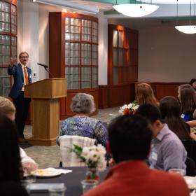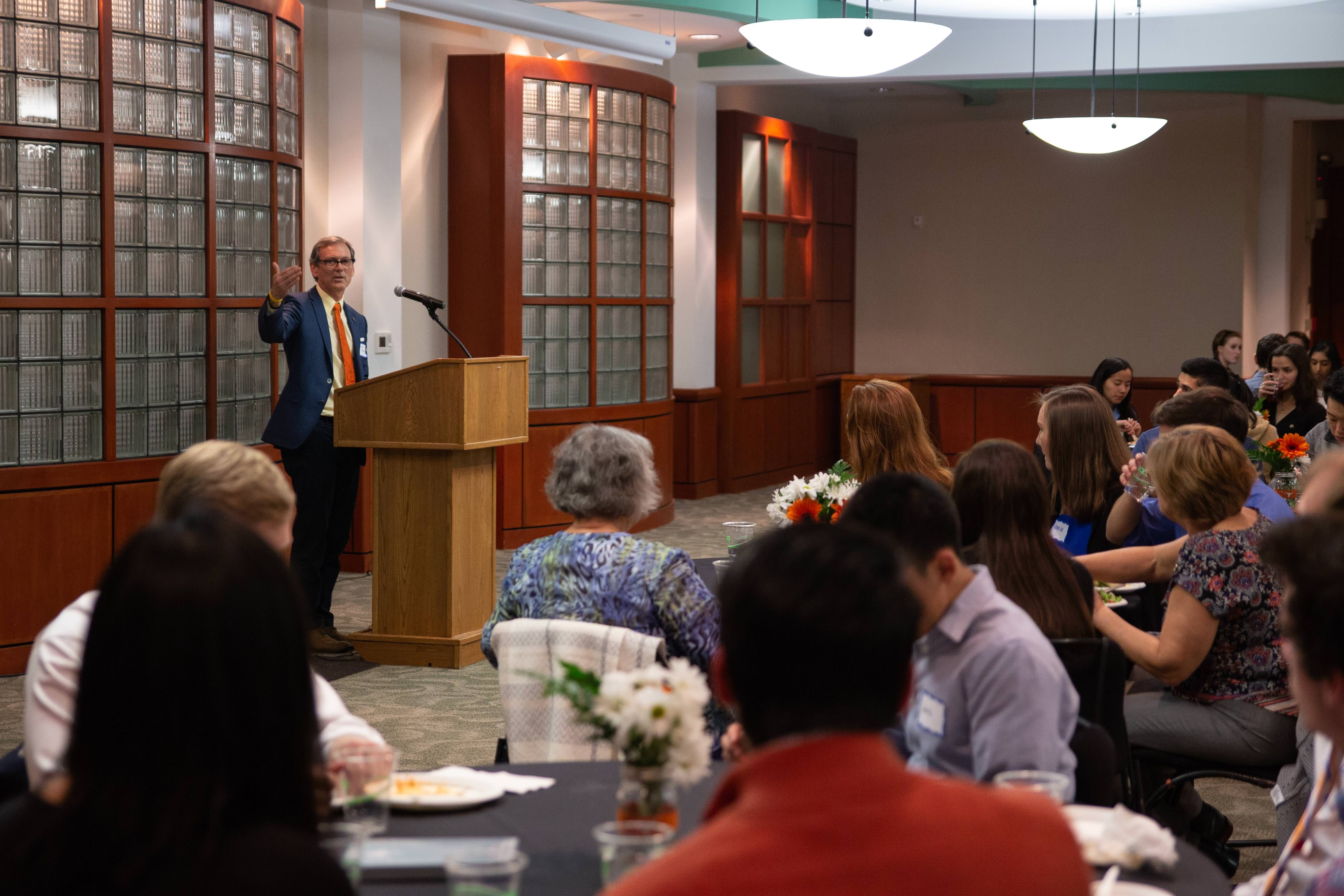 The Dean’s List banquet featured remarks from UGS Dean Brent Iverson, a keynote speech from Moody College of Communication professor Courtney Byrd, and a ceremony congratulating every Dean’s List recipient. Dr. Byrd, Dean Iverson, and Associate Dean Larry Abraham encouraged all Dean’s List recipients to keep striving for success and exploring opportunities at UT Austin.